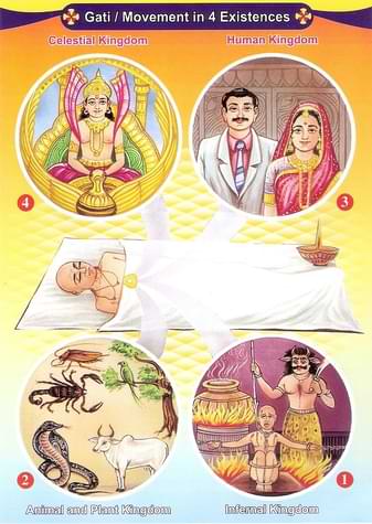 در آیین جینیسم، یک روح بسته به کارمای خود به هریک از چهار حالت وجودی پس از مرگ سفر میکند. حالت بهشتی (والاترین حالت وجودی)، حالت انسانی، حالت جانوری، و حالت جهنمی (پستترین حالت وجودی)