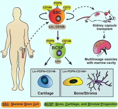 سلولهای بنیادی اسکلتی انسان که قادر به خودبازتولید و تفکیک چندنژادی در استخوان، بافت بنیادی و غضروف هستند، توسط دکتر «مایکل لانگیکر» و همکارانش از دانشکده پزشکی دانشگاه استنفورد مورد شناسایی قرار گرفتند. این نخستینبار است که سلولهای بنیادی اسکلتی که قبلا در موش مشاهده شده بودند، در انسان نیز کشف شدند. بافتهای اسکلتی از قبیل استخوان، از پتانسیل بازتولید قابلتوجهی برخوردارند. نقصهای استخوانی خیلی زود درمان میشوند و برخی از مهرهداران حتی میتوانند کل قسمتهای مربوط به اندامهای زیرینشان را بازتولید نمایند. اما قابلیتهای بازتولیدی بافتهای اسکلتی در سایر مهرهداران با محدودیتهای بالاتری روبروست. برای مثال، استخوانهای انسانها و موشها میتوانند از نقصهای کم تا متوسط احیا شوند، اما بافتهای غضروفی بزرگسالان قدرت بازتولید (احیا) کمی دارند و یا اصلا فاقد این توانایی هستند. افزون بر این، با گذشت زمان، موشها و انسانها با تحلیل بافتهای اسکلتی روبرو میشوند که این امر با افزایش سن ارتباط دارد. سوء عملکرد اسکلتی میتواند به طیف گستردهای از مشکلات سلامتی منجر گردد؛ از بیماریهای مرتبط با سن مثل پوکی استخوان و آماس مفصلی – استخوانی گرفته تا آسیبهای اسکلتی درمان نشونده، اختلالهای خونی و حتی سرطان. علیرغم تاثیر قابل توجه آن بر سلامتی و بیماری، گزینههای درمانی با هدفِ بهبود عملکرد اسکلتی در حال حاضر انگشت شمار است. یکی از موانع اصلی اینست که تنظیم سلولهای بنیادی در سیستم اسکلتی انسان بهصورت چشمگیری بدون بررسی باقی مانده است. لذا نیاز به انجام تحقیقات بیشتر در این زمینه احساس میشود. در مطالعه جدید، دکتر لانگیکر و همکارانش با شناسایی و تعیین ویژگیهای سلولهای اسکلتی انسان در انواعی از بافتها سعی در ارتقای دانش خود در این زمینه داشتهاند. شناسایی سلولهای اسکلتی انسان از وجود مسیرهای مختص گونه در رشد اسکلتی و واکنش به آسیب حکایت دارد و میتواند راهنمای خوبی برای رویکردهای بازتولید (احیای) آینده باشد. این سلولهای خودبازتولید و قدرتمند هم در بافتهای مغز استخوان بزرگسالان و هم جنین وجود داشتند و میتوانند از سلولهای بنیادی «iPSCs» بدست آیند. تیم محققان با تعریف روابط میان سلولهای بنیادی اسکلتی انسان و آغازگرهای اسکلتی پایین دست توانستند نقشه اجدادی جامعی از شکلگیری بافتهای اسکلتی در انسانها تهیه کنند. علاوهبراین، مقایسههای اپی ژنتیک با سلولهای بنیادی اسکلتی موشها از وجود مسیرهای حفظ شده فرگشتی حکایت داشت که در تنظیم شکلگیری بافتهای اسکلتی به واسطه سلولهای بنیادی ایفای نقش می کردند. همچنین، مسیرهای مولکولی وجود داشت که می توانستند تفاوتهای مختص به گونه را در رشد استخوان و ساختار اسکلتی تنظیم کنند.