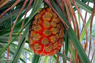 میوه هالا میوه گیاه زینتی پاندانوس به نام هالا یا پوهالا یا پوراگین شهرت دارد. میوه P. tectorius تخممرغی، بیضوی، تقریبا کروی و یا گرد با قطر 4 تا 20 سانتیمتر و طول 8 تا 30 سانتیمتر است که از 38 تا 200 بند انگشتهایی گوهایمانند تشکیل شده است. هرکدام از فالانژها یا بندانگشتیها بهطور متوسط حاوی 2 دانه و حداکثر 8 بذر هستند. بذرها درون این بندها برای چندین ماه میتواند زنده بمانند که توسط جریانهای اقیانوسی و دامها انتقال مییابند.