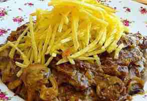 من این غذا رو با رب گوجهفرنگی دوست دارم و مدل سفیدش زیاد باب طبعم نیست، ولی بیشتر با سس سفید، بههمراه جعفری خردشده مرسومه. البته در بعضی مواقع، قارچ هم بهش اضافه میشه. اگر با گوشت گوسفندی درست کنیم، به خاطر اینکه طبع سرد گوشت گوساله رو نداره، مقویتره، اما برای پذیرایی از مهمان، بهترست با گوشت گاو تهیه شود تا شکل و ظاهر خودش را حفظ کند و زیباتر باشد. بیف استروگانف پیشغذای خوبیه که در کنار غذای اصلی، سرو بشه.