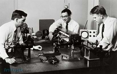 علی جوان، چارلز هارد تاونز و آرتور لئونارد شالو هنگامیکه علی جوان کار روی لیزر گازی را آغاز کرد، دو محقق دیگر چارلز هارد تاونز (استادش) و آرتور لئونارد شالو راهی دیگر را برای دستیابی به لیزر پی گرفتند. نظریه آنها مبنی بر این اساس بود که نور لیزرها را میتوان توسط مکش با یک منبع نور زیاد استخراج کرد؛ نظریهای که اکنون بهعنوان «پمپکردن لیزرهای نوری» شناخته میشود. جوان اما بهجای استفاده از یک منبع نور قوی، از جریانهای برقی که انرژی الکتریکی را تبدیل به نور لیزری میکند، استفاده کرد.